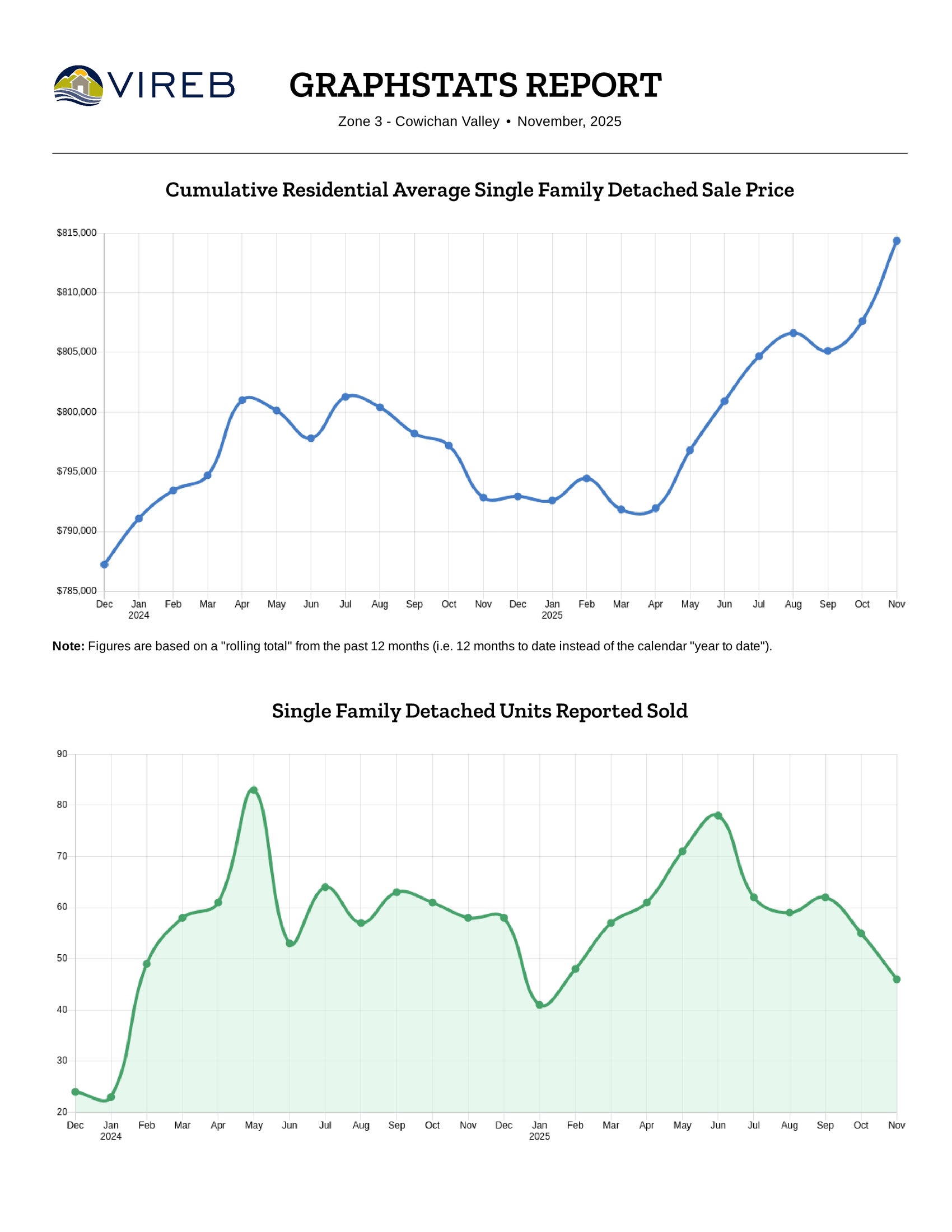The Cowichan Valley single-family market is wrapping up 2025 in solid shape, with prices continuing to climb even as the pace of sales eases and inventory tightens. November’s average sale price landed in the mid‑$820,000s, up from last year and slightly above October, while homes are selling much faster than they were a year ago. For sellers, that means values remain well supported; for buyers, there is still a window of opportunity as new listings come to market—but the most appealing homes are not sitting for long.