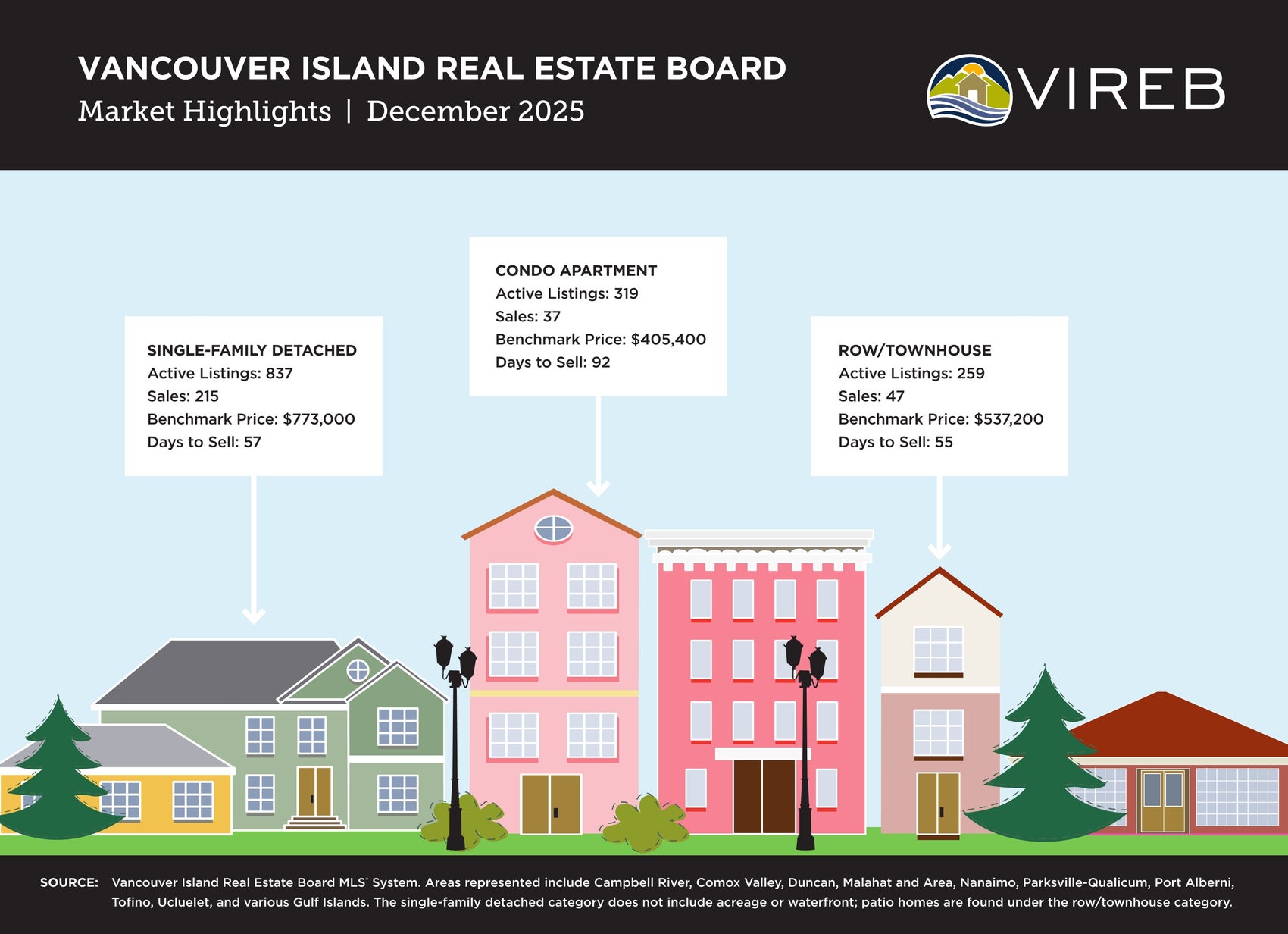 Cowichan Valley 2025 Recap & 2026 Outlook. Vancouver Island’s housing market, including the Cowichan Valley, moved through 2025 in a steady, resilient fashion despite higher borrowing costs and broader economic uncertainty. Across the Island, sales activity held up, and most areas saw modest price growth rather than dramatic swings—signs of a balanced market.