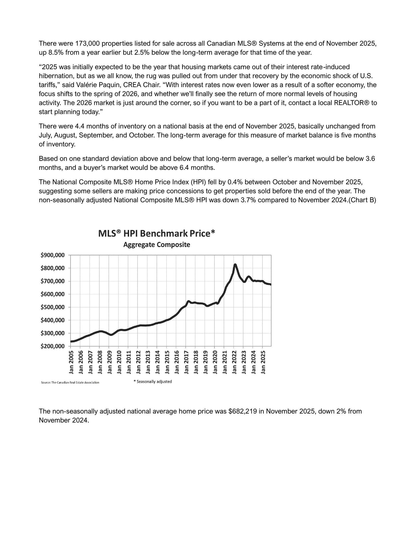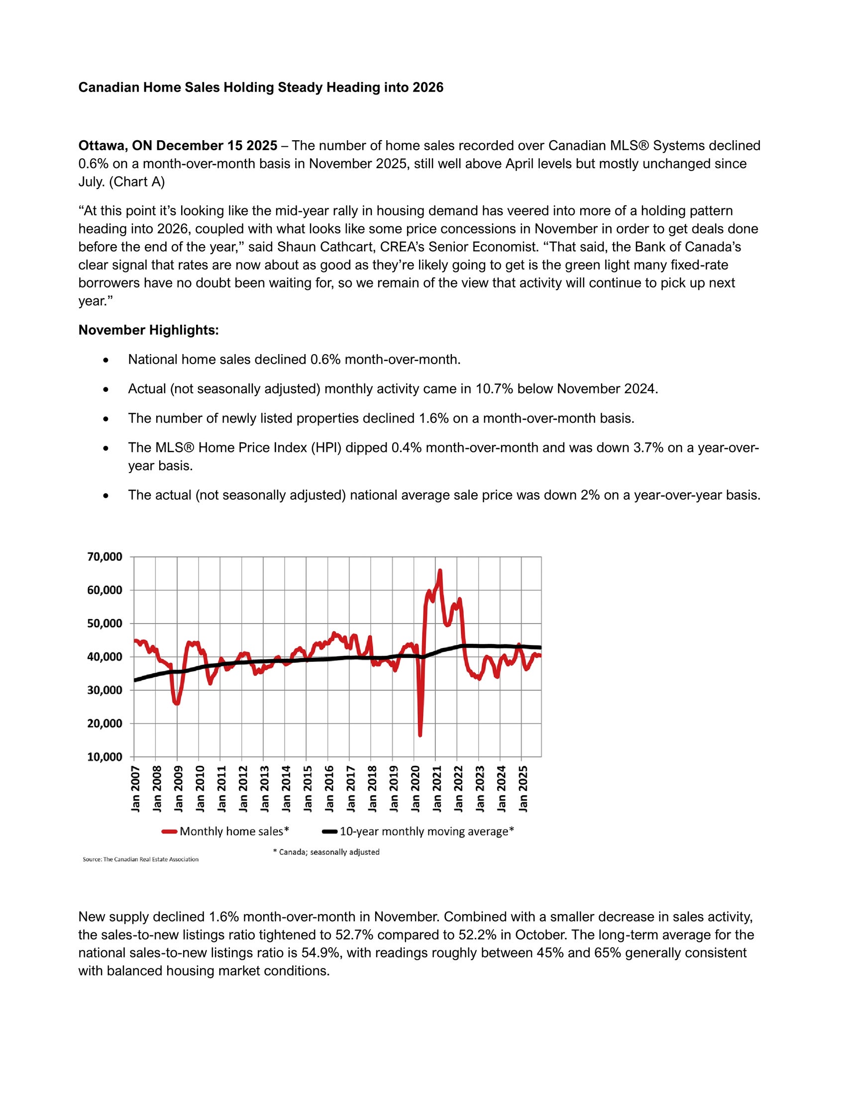 • Prices & Sales: National average prices saw a modest decline for the year. Sales were subdued in the first half but improved by the fall, though annual volume was down from 2024.