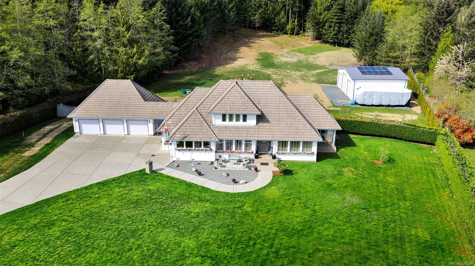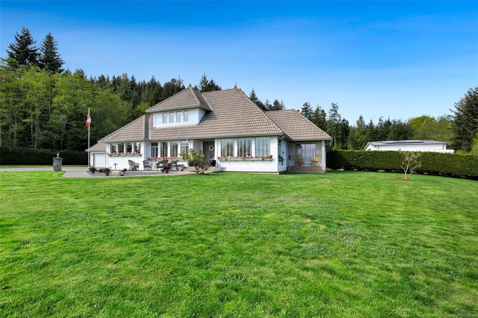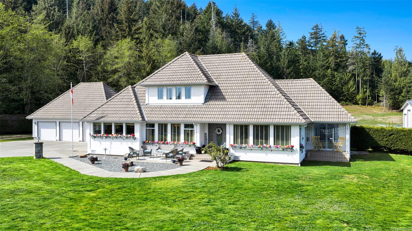 Private 2-acre ocean-view estate in Mill Bay blending refined living with relaxed West Coast charm. This beautifully updated 3-bedroom, 3-bath residence offers desirable main-level living, a refreshed kitchen and family room, and bright, welcoming spaces designed for everyday comfort. Large windows invite natural light and capture filtered ocean views. Outdoors, enjoy a peaceful seasonal pond, a unique cantina-style entertaining area, and a hot tub—perfect for hosting or unwinding in complete privacy. A newly constructed (2024) insulated 3-bay shop with craft room and heat pump provides exceptional versatility for hobbies, storage, or workspace. Gated entry, ample RV parking, and a triple garage add convenience and function. Set in a quiet, private setting, this property offers a rare combination of space, privacy, and modern upgrades—an ideal retreat to call home.
