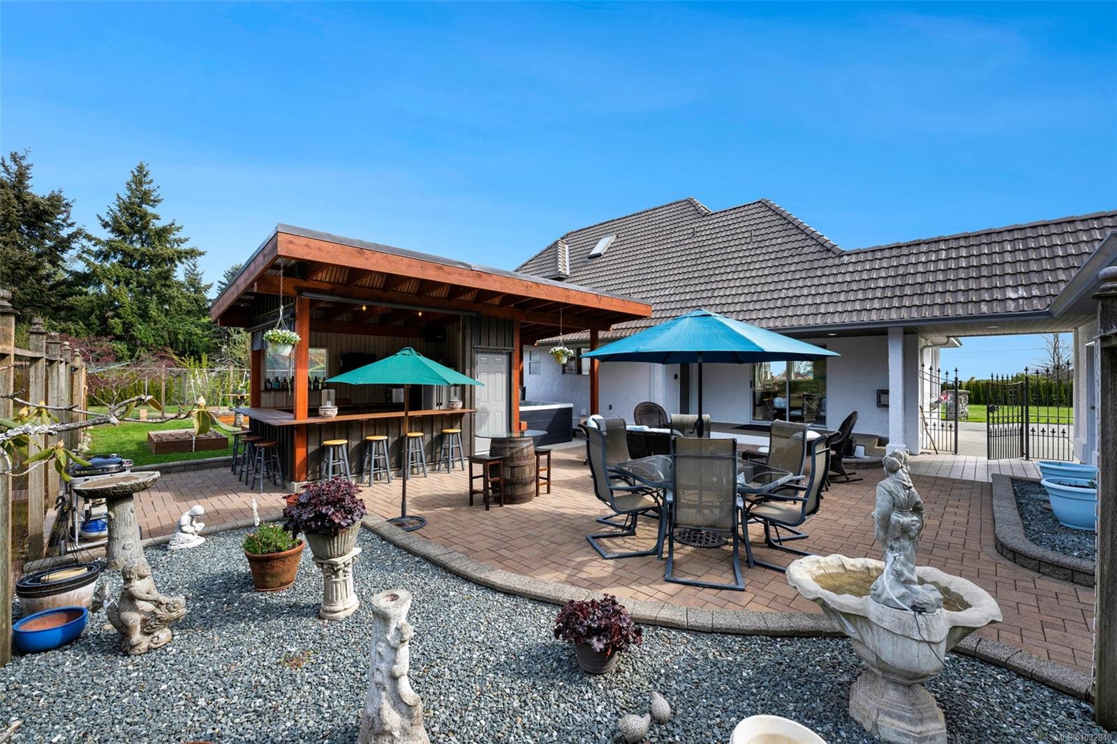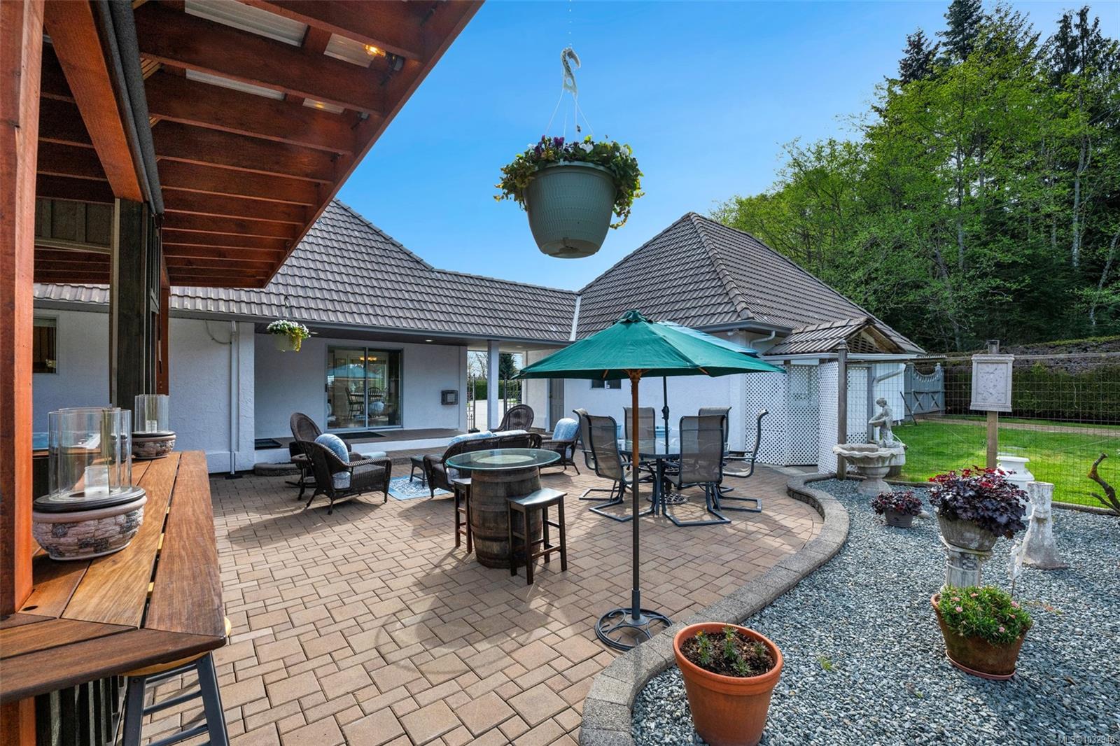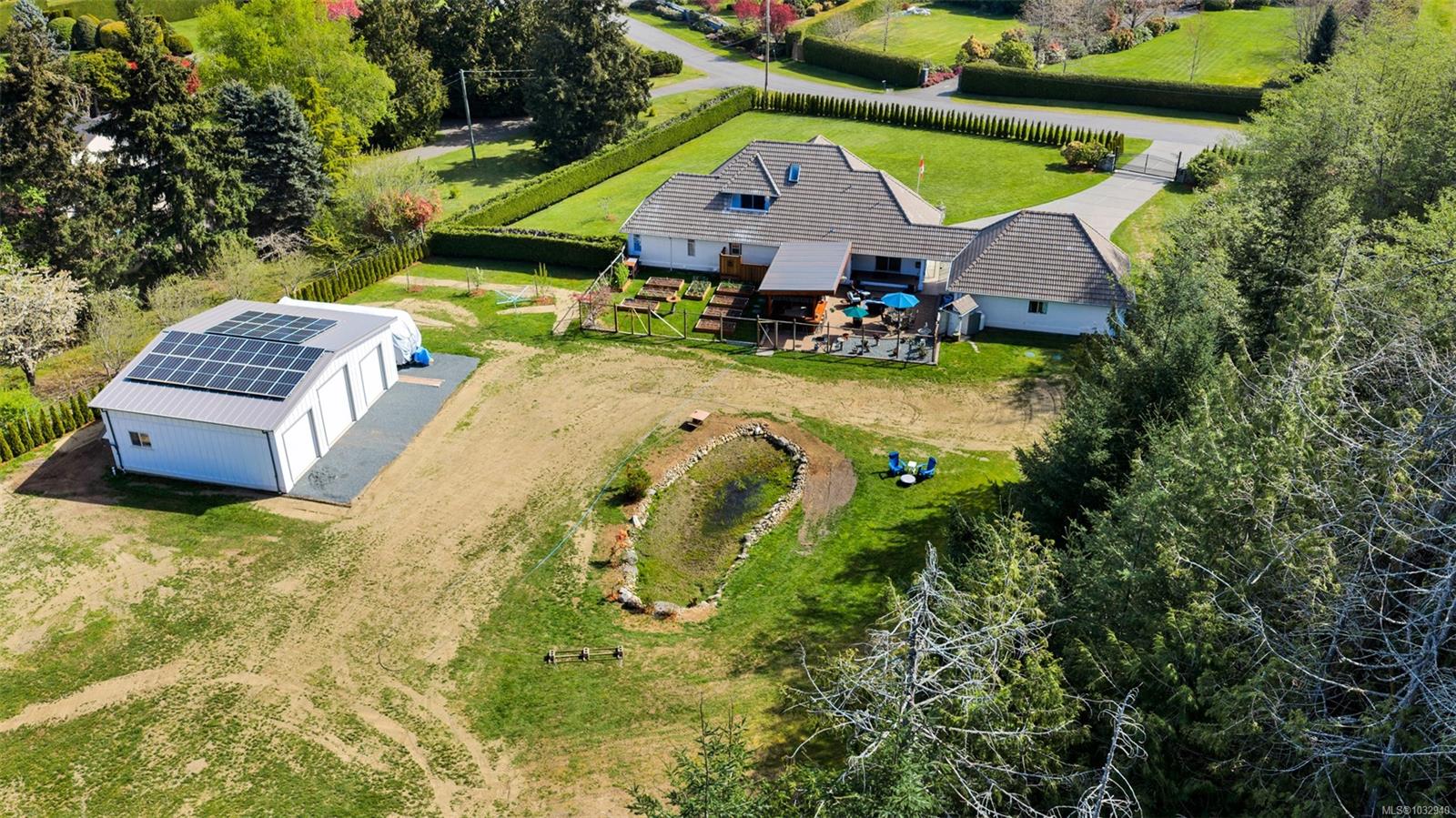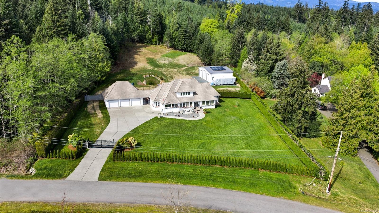 Private 2-acre ocean-view estate in Mill Bay blending refined living with relaxed West Coast charm. This beautifully updated 3-bedroom, 3-bath residence offers desirable main-level living, a refreshed kitchen and family room, and bright, welcoming spaces designed for everyday comfort. Large windows invite natural light and capture filtered ocean views. Outdoors, enjoy a peaceful seasonal pond, a unique cantina-style entertaining area, and a hot tub—perfect for hosting or unwinding in complete privacy. A newly constructed (2024) insulated 3-bay shop with craft room and heat pump provides exceptional versatility for hobbies, storage, or workspace. Gated entry, ample RV parking, and a triple garage add convenience and function. Set in a quiet, private setting, this property offers a rare combination of space, privacy, and modern upgrades—an ideal retreat to call home.
